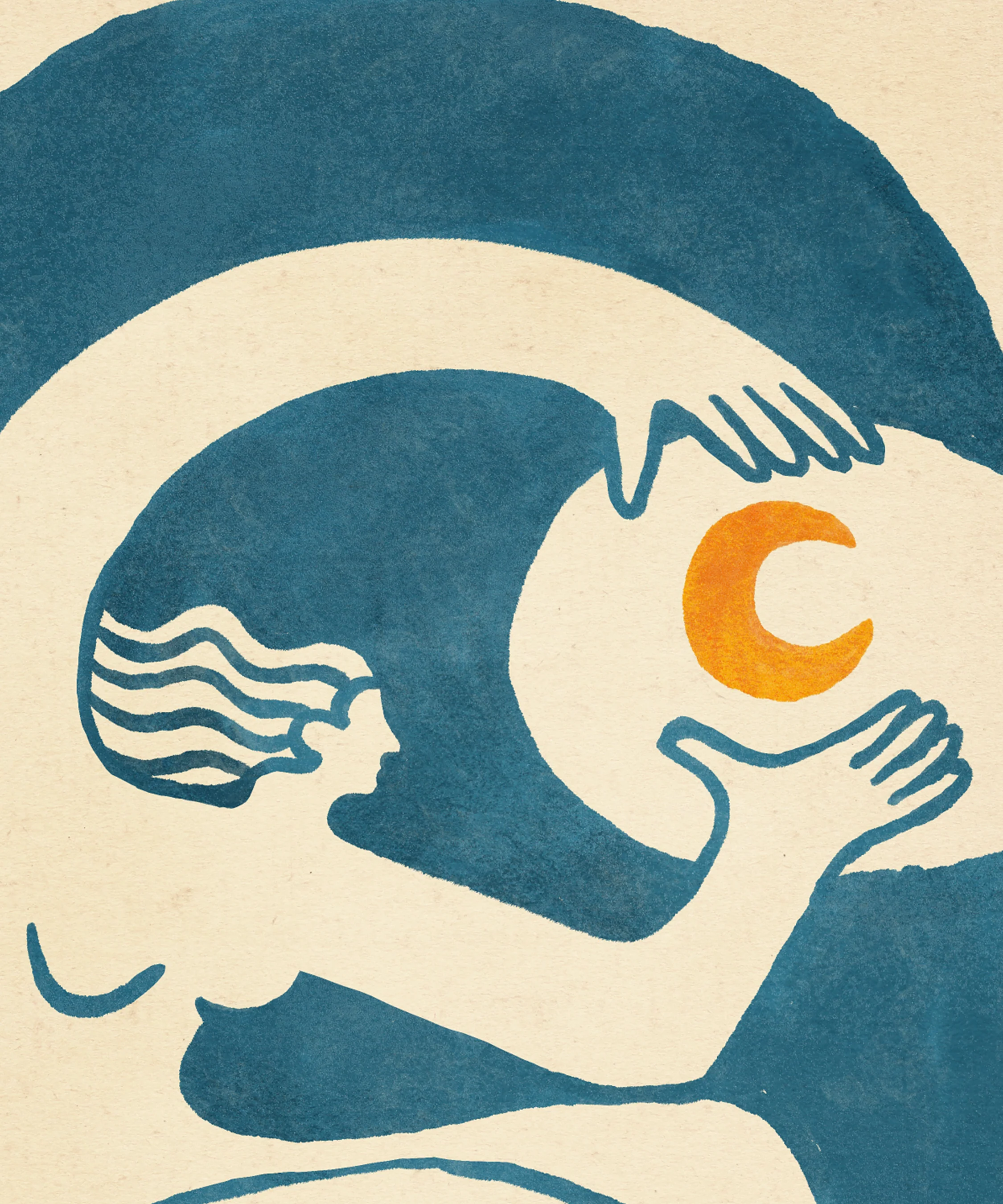 The woman and the moon - print #2 in our Sun and Waves Series. With it's minimalist and textured style, this piece will help create the perfect relaxing atmosphere in your coastal space. We recommend pairing this piece with Sun and Waves #1 for the perfect sun and moon duo!
