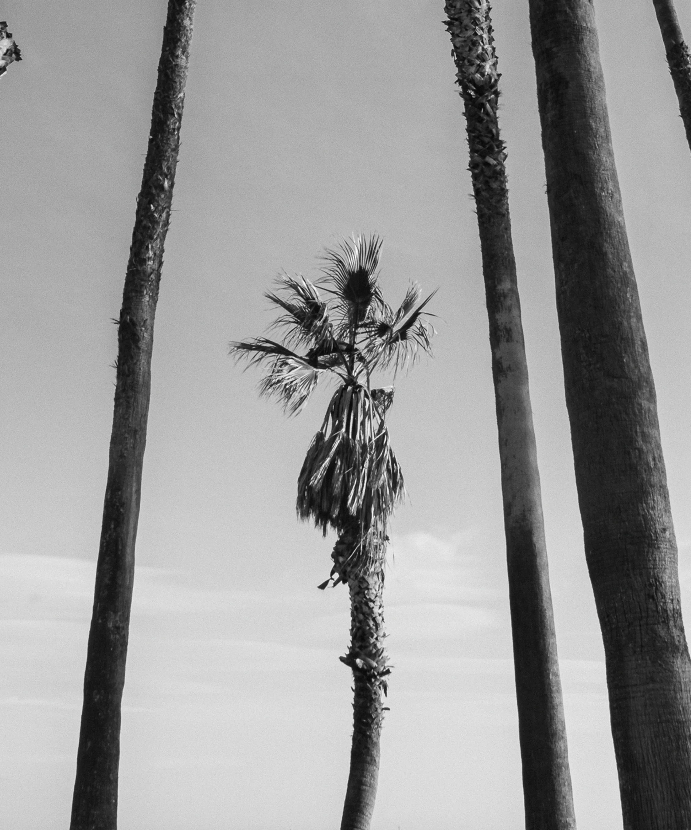 This piece is print #5 in a stunning 8-print collection by Santa Barbara based photographer Alex Noble. Noble has an eye for capturing simple yet stunning compositions on the coast of California, like this black and white shot showing a little palm tree reaching up towards its taller companions.